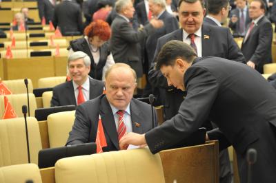 Депутаты-коммунисты в зале пленарных заседаний Госдумы. Фоторепортаж Николая Малышева