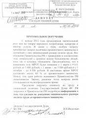 На пленарном заседании Госдумы 14 марта депутаты-коммунисты В.Н. Федоткин, С.И. Юрченко и В.С. Романов обратились с протокольным поручением, касающимся повышения минимального размера оплаты труда.