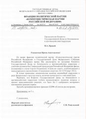 Просьба проинформировать фракцию КПРФ об итогах рассмотрения.
