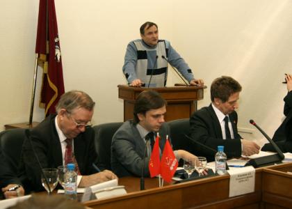 Круглый стол открыл руководитель фракции КПРФ в Мосгордуме Андрей Клычков.