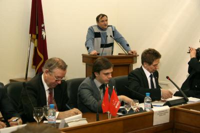 Круглый стол открыл руководитель фракции КПРФ в Мосгордуме Андрей Клычков.