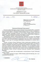 Депутат Государственной Думы РФ от КПРФ Владимир Симагин обратился с депутатским запросом к министру культуры РФ Мединскому по поводу показа на телеканале НТВ псевдоисторического фильма «Служу Советскому Союзу» режиссера А. Устюгова.