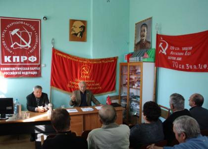 Рабочий визит депутата Государственной Думы от Белгородской области, члена фракции КПРФ С.В. Муравленко начался на Белгородчине со встречи с активом шебекинской партийной организации. В ней приняли участие первый секретарь Шебекинского райкома КПРФ В.И. Рудоман, члены бюро райкома, секретари первичных парторганизаций.
