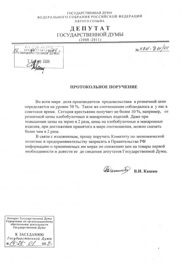 На заседании Госдумы 28 января "партия власти" в Госдуме отклонила протокольные поручения депутата-коммуниста В.И. Кашина.