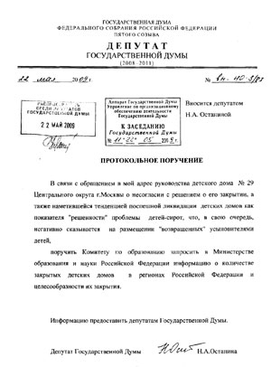 На заседании 22 мая Госдума приняла протокольное поручение депутата-коммуниста Н.А. Останиной.