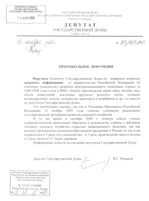 Выступление депутата фракции КПРФ В.С. Романова на пленарном заседании Государственной Думы 13 ноября 2009 г.