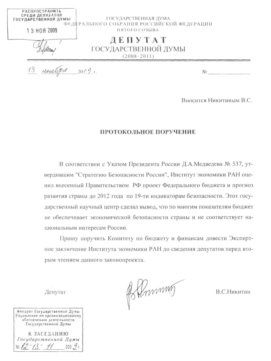 Прошу поручить Аппарату Госдумы, комитетам по бюджету и финансам довести до сведения депутатов экспертное заключение института экономики Российской Академии наук до второго чтения.