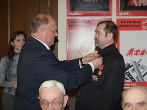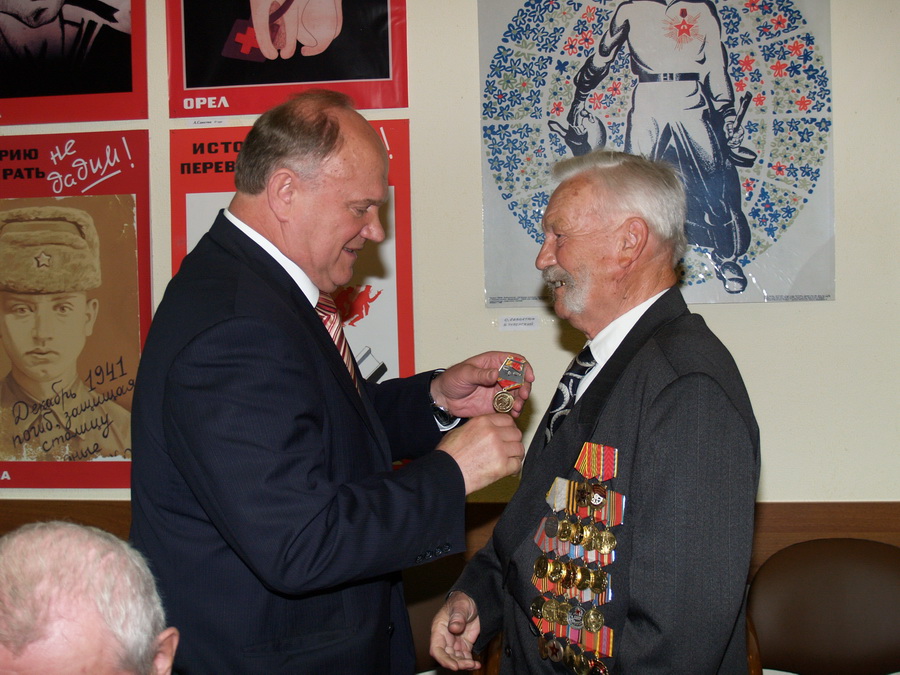 7 мая в Москве в Госдуме Председатель ЦК КПРФ Г.А. Зюганов вручил памятные медали ЦК КПРФ в ознаменование 65-летия Победы в Великой Отечественной войне и ордена «Партийная доблесть» группе ветеранов.