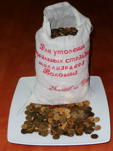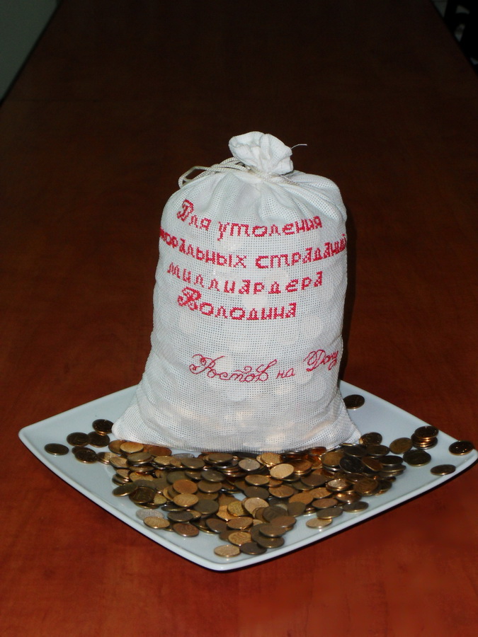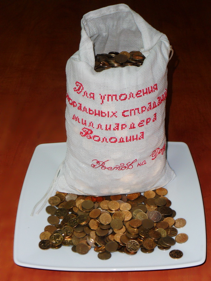 Первый мешочек весом в более 15 кг монет номиналом в 1, 5 и 10 копеек донские коммунисты и комсомольцы отправят в ближайшее время в Москву для утоления «моральных страданий» г-на Володина, вызванных критикой секретарем ЦК КПРФ Валерием Рашкиным неких «володиных» и «слизок», отстаивающих интересы олигархата, а не народа.