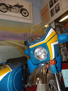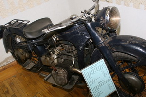 В комментариях к постам в ЖЖ меня несколько раз спрашивали: «Правда ли, что советские мотоциклы – калька с немецких?» В музее информацию подтверждают. В 1939 году Гитлер начал военные действия в Европе. Руководство Красной армии проанализировало причины успеха. Оказалось, у немцев имелись воинские части, состоящие из танков, бронемашин и младшего звена – мотоциклов. Не только двухколесного типа, но и трехколесных с боковым прицепом. Командование решило создавать такие же механизированные соединения. Благо, в СССР уже имелись танки «КВ1», «КВ2» и бронемашины. Единственное, в отдельном виде не существовало мотопромышленности. Специалисты заявили сразу, что от разработки конструкции тяжелого мотоцикла, на который можно будет установить пулемет, до ее воплощения в жизнь после всех испытаний, доводок требовалось пять лет. Минимум. Из-за нехватки времени власти приказали скопировать один из образцов мировой промышленности. Для этого в Москву свезли тяжелые мотоциклы из разных стран и провели испытания. Лучшей признали модель BMW Р-71. Ее взяли за основу и воспроизвели на Московском мотозаводе.