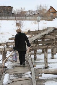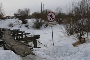 Практически самый центр Ирбита. За рекой Ницей – небольшой микрорайон: 8 домов, 24 человека, единственная улица Орджоникидзе. Возле мосточка, который больше всего годится для кошек и собак, стоит знак «СТОП». Идти дальше запрещено. Однако на противоположный берег иначе не попасть. Поэтому люди ходят по бревнышкам и рискуют жизнью каждый день. Будущий паводок «деревянная тропа» может не пережить. – Капитальный мост здесь смыло еще в 80-х. На скорую руку власти сделали подобие переправы. В прошлом году сотрудники прокуратуры возмутились... И обязали мэрию построить нормальное сооружение, – рассказывает руководитель фракции КПРФ в Свердловской областной думе Андрей Альшевских. – Однако до последнего времени администрация города не спешила выполнять предписание Глава города единоросс Геннадий Агафонов комментирует, что на понтонный мост требуется около 30 миллионов рублей, на объездную дорогу (даже щебеночную) – такая же сумма. На публике мэр озвучивает, что решит проблему иначе. Проще переселить людей на «большую землю». Уже подсчитали, нужно девять миллионов рублей и даже предусмотрели в текущем бюджете около миллиона. – Но не все так просто, как того хотел бы градоначальник, – объясняет Андрей Альшевских. – Есть очередь нуждающихся в жилье, в Ирбите таких – 800 с небольшим человек. И если даже людей с Орджоникидзе поставят в льготный список (80 человек), переселение затянется на годы вперед. Мало того. Пообщался вчера с жителями, они переезжать никуда не хотят. Поэтому срочно написал запросы в областную, окружную прокуратуры, считаю, надзорные органы должны строго отреагировать на бездействие единоросса.