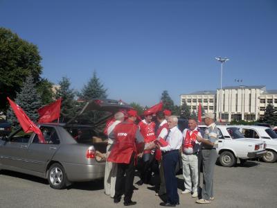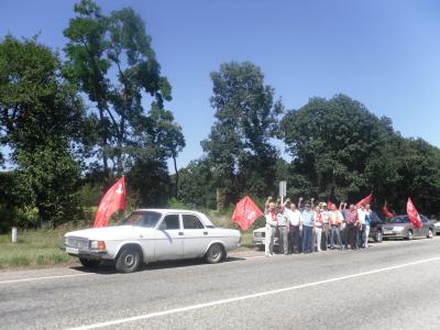 На въезде в Мостовской район красный десант коммунистов Краснодара уже встречали экипажи агитмашин районной парторганизации, далее с которыми была организована акция «Красные в районе». Колонна автомобилей с красными флагами, под приветственные сигналы проезжающих автомобилей подъехала в центр п.Мостовского к зданию администрации района.