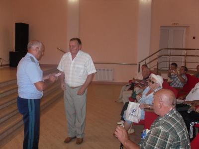Генерал-майор А.И.Топчий рассказал о работе Кубанского союза советских офицеров, вручил удостоверение члена Союза офицеру, пополнившему ряды организации.