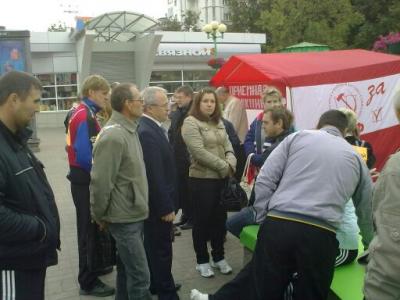 Фракция КПРФ Ярославской областной Думы 7 сентября 2011г., в день начала Мирового политического форума, проводит прием граждан на площади Юности. Для этой цели установлена палатка с символикой КПРФ. Прием граждан ведут депутаты А.В. Воробьев и М.К. Парамонов.