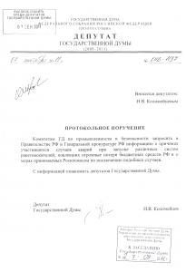 На заседании Госдумы 7 сентября депутат-коммунист Н.В. Коломейцев вносил протокольное поручение, которое было отклонено.