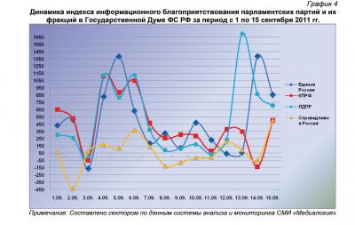 Динамика индекса информационного благоприятствования парламентских партий и их фракций в Государственной Думе ФС РФ за период с 1 по 15 сентября 2011 гг.