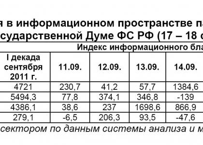 Характер освещения в информационном пространстве парламентских партий и их фракций в Государственной Думе ФС РФ (17 – 18 сентября 2011 года)