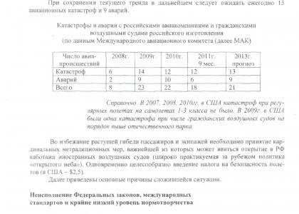 Краткая аналитическая записка «О причинах роста авиакатастроф в гражданской авиации РФ»