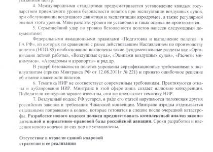 3. Подавляющее число специалистов в органах власти, которые занимаются авиационными вопросами, некомпетентны, не имеют необходимого профессионального образования и опыта работы в отрасли. Это в полной мере относится и к генеральным директорам (разного рода менеджерам) авиационных предприятий. Участились случаи правовой и профессиональной неграмотности чиновников авиационных администраций.