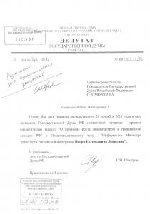 Прошу Вас дать указание распространить 20 сентября 2011 года в зале заседания Государственной Думы РФ справочный материал - краткая аналитическая записка "О причинах роста авиакатастроф в гражданской авиации РФ" к Правительственному часу "Информация Министра транспорта Российской Федерации Игоря Евгеньевича Левитина".