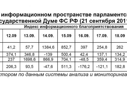 Характер освещения в информационном пространстве парламентских партий и их фракций в Государственной Думе ФС РФ (21 сентября 2011 года)