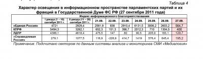 Характер освещения в информационном пространстве парламентских партий и их фракций в Государственной Думе ФС РФ (27 сентября 2011 года)