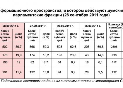 Характер освещения в информационном пространстве парламентских партий и их фракций в Государственной Думе ФС РФ (28 сентября 2011 года)