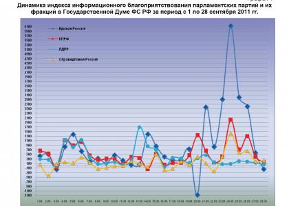 Динамика индекса информационного благоприятствования парламентских партий и их фракций в Государственной Думе ФС РФ за период с 1 по 28 сентября 2011 гг.
