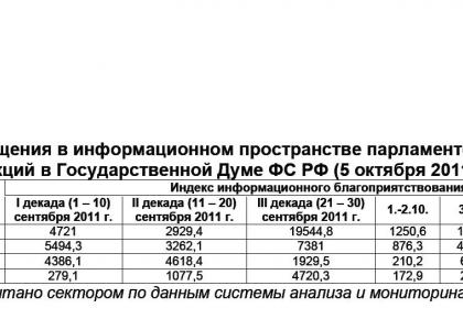 Характер освещения в информационном пространстве парламентских партий и их фракций в Государственной Думе ФС РФ (5 октября 2011 года)