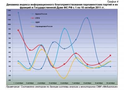 Динамика индекса информационного благоприятствования парламентских партий и их фракций в Государственной Думе ФС РФ с 1 по 10 октября 2011 гг.