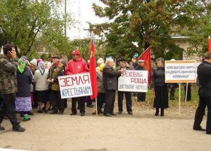 Затем депутат Государственной Думы ФС РФ, секретарь ЦК КПРФ С.П.Обухов принял участие в массовой акции протеста жителей станицы Новотитаровской Динского района против захвата муниципальных земель – березовой и ореховой рощи, а также бывшего дома культуры колхоза имени Калинина, который так и не был передан в муниципальную собственность, а был реконструирован в родовой замок одного из местных крупных землевладельцев. Здесь же С.П.Обухов провел массовую встречу с избирателями, ответил на их вопросы, провел прием граждан.