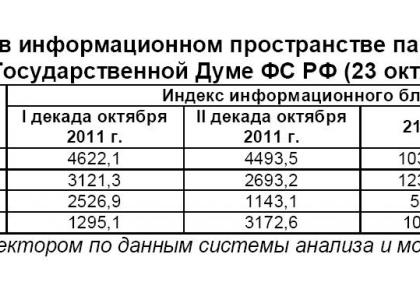 Характер освещения в информационном пространстве парламентских партий и их фракций в Государственной Думе ФС РФ (23 октября 2011 года)