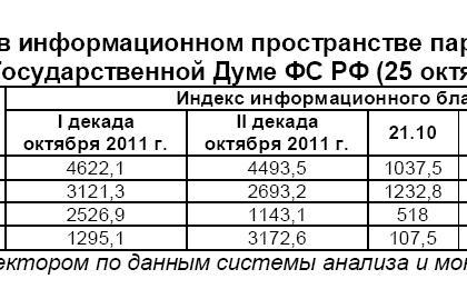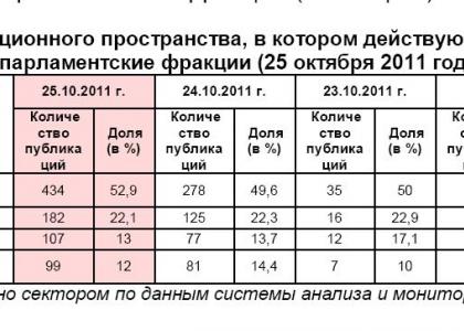 Характер освещения в информационном пространстве парламентских партий и их фракций в Государственной Думе ФС РФ (25 октября 2011 года)