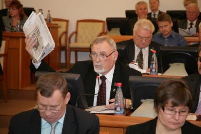 По программе и бюджету области на 2012 год баталии разгорелись с новой силой. Коммунисты выступили против и того и другого документа. По программе потому, что там не прописаны механизмы реализации названных задач, не подготовлены многие целевые программы. По бюджету - потому, что он, как выразился руководитель фракции КПРФ В.А.Кислицын "не решает ни одной крупной социальной проблемы", хотя основан, как выразилась заместитель губернатора Е.А.Перминова, на оптимистическом прогнозе. Коммунисты возразили, что в период выборов, когда значительные суммы будут затрачены на подачки избирателям, бюджет после марта 2012 года просто рухнет. Не случайно хитрый и дальновидный А.Кудрин предпочел заранее на некоторое время ретироваться!