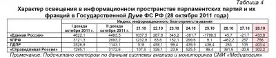 Характер освещения в информационном пространстве парламентских партий и их фракций в Государственной Думе ФС РФ (28 октября 2011 года.