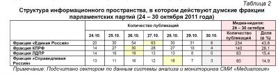 Структура информационного пространства, в котором действуют думские фракции парламентских партий (24 – 30 октября 2011 года)