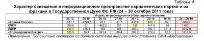 Характер освещения в информационном пространстве парламентских партий и их фракций в Государственной Думе ФС РФ (24 – 30 октября 2011 года)