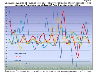 Динамика индекса информационного благоприятствования парламентских партий и их фракций в Государственной Думе ФС РФ с 1 по 30 октября 2011 гг.