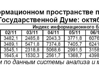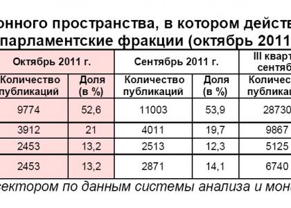 Характер освещения в информационном пространстве парламентских партий и их фракций в Государственной Думе: октябрь 2011 г.