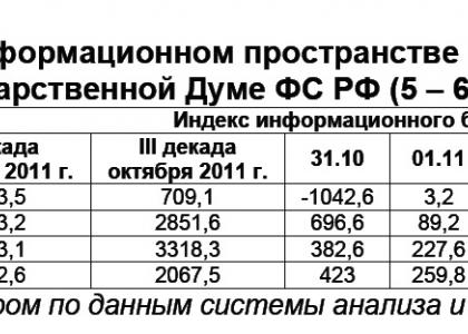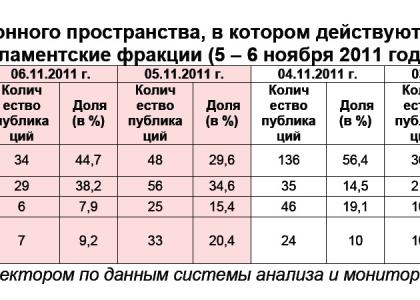 Характер освещения в информационном пространстве парламентских партий и их фракций в Государственной Думе ФС РФ (5 – 6 ноября 2011 года)