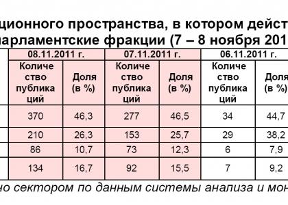 Характер освещения в информационном пространстве парламентских партий и их фракций в Государственной Думе ФС РФ (7 – 8 ноября 2011 года)