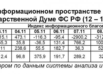 Характер освещения в информационном пространстве парламентских партий и их фракций в Государственной Думе ФС РФ (12 – 13 ноября 2011 года