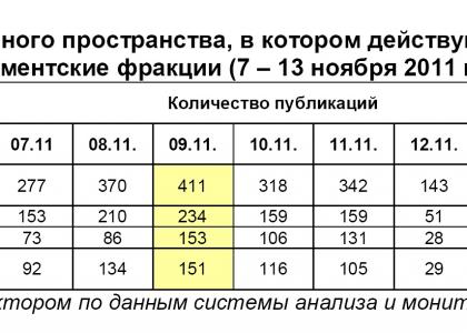 Характер освещения в информационном пространстве парламентских партий и их фракций в Государственной Думе ФС РФ (7 – 13 ноября 2011 года)