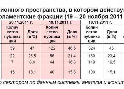 Характер освещения в информационном пространстве парламентских партий и их фракций в Государственной Думе ФС РФ (19 – 20 ноября 2011 года)