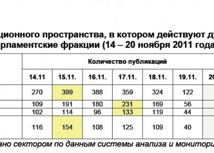 Характер освещения в информационном пространстве парламентских партий и их фракций в Государственной Думе ФС РФ (14 – 20 ноября 2011 года)