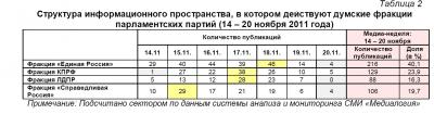 Структура информационного пространства, в котором действуют думские фракции парламентских партий (14 – 20 ноября 2011 года)