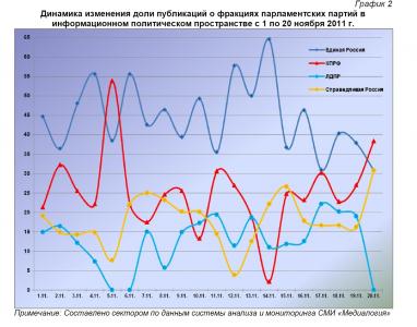 Минимальный же интерес к парламентариям был проявлен 20 ноября (а к коммунистам и 14 ноября), когда фракции Государственной Думы упоминались исключительно в контексте сообщений о представляемых ими партиях.