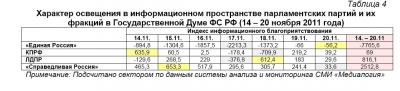 Характер освещения в информационном пространстве парламентских партий и их фракций в Государственной Думе ФС РФ (14 – 20 ноября 2011 года)