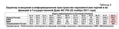 Характер освещения в информационном пространстве парламентских партий и их фракций в Государственной Думе ФС РФ (22 ноября 2011 года)