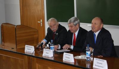 Открыл встречу руководитель учебного заведения Л.Я. Дятченко. Он представил гостей, рассказал немного об истории университета, о делах дня сегодняшнего: достигнутых успехах и пока еще не решенных проблемах.